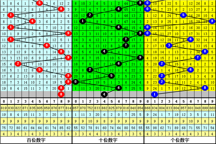跨度分析:跨度最近10期012路比为3:5:2,1路跨度相对较热,近3期跨度隔离遗漏15期、7期和4期,本期看好热码跨度出现,参考跨度7。